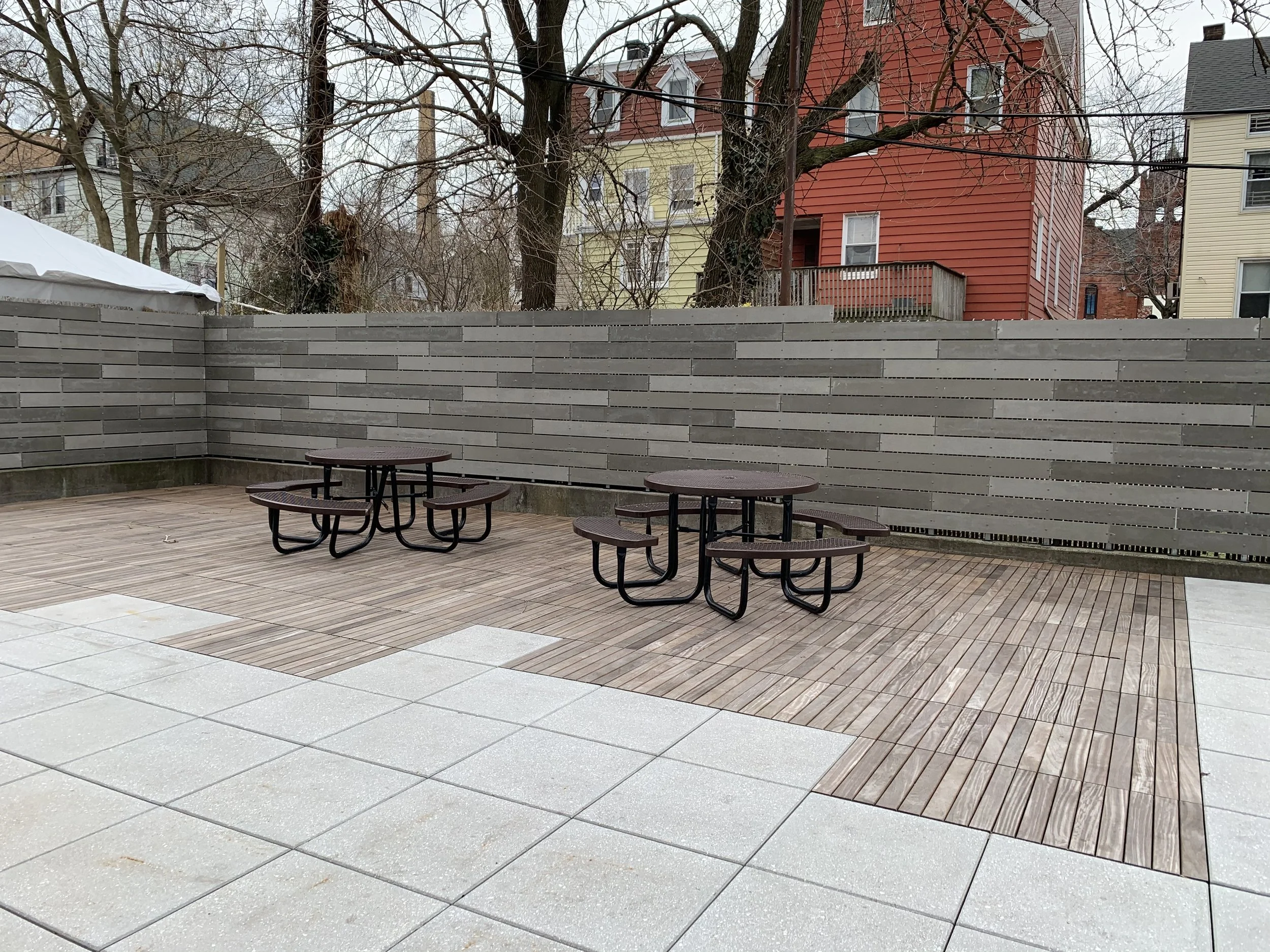 A previously under-utilized back yard gets new life with paving and cement board fencing to create some privacy.