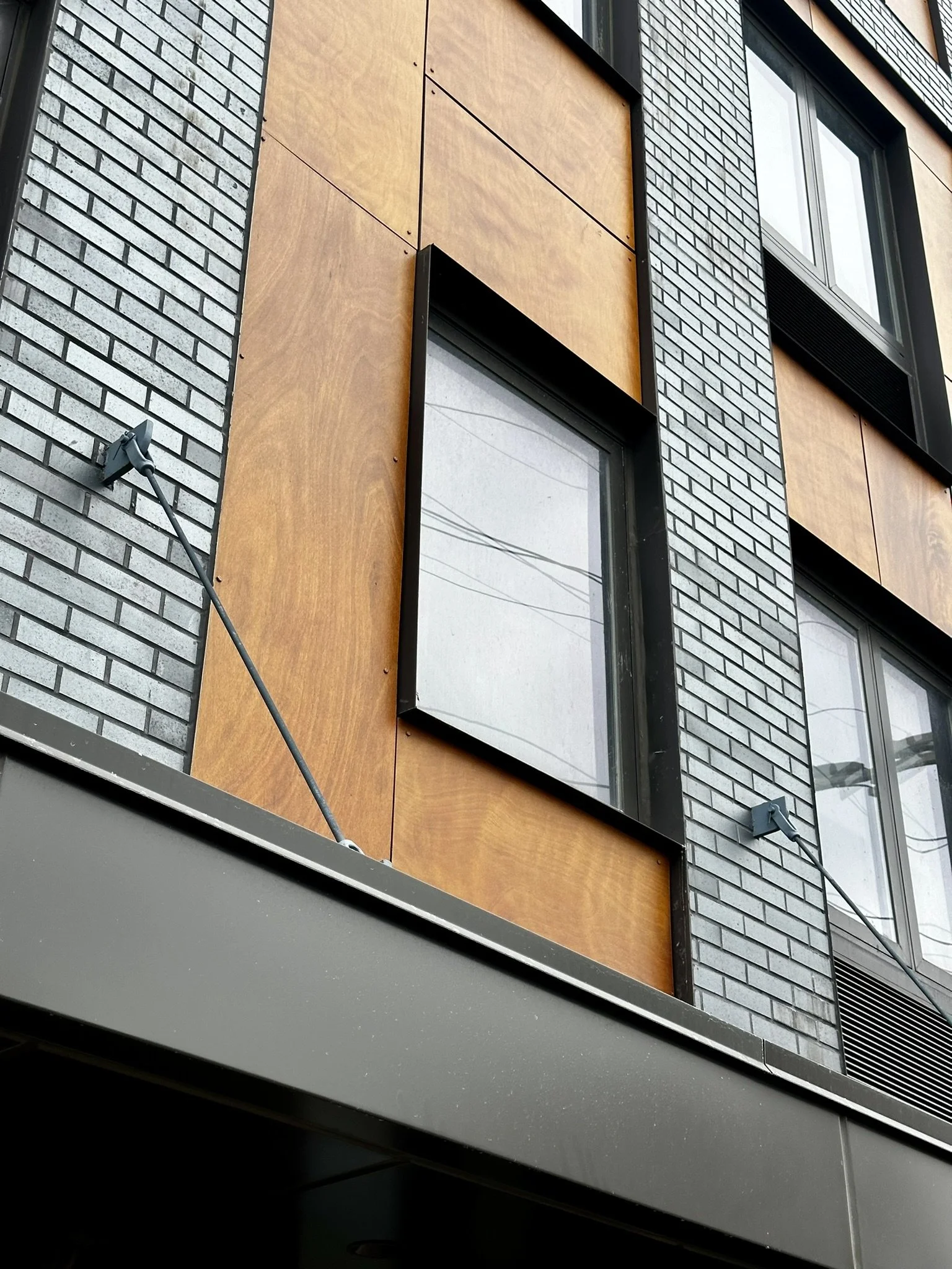 While we couldn’t reconfigure any space, we used all-new exterior materials to break down the mass of the building and highlight the entry. Rich brown and bronze tile and metal accents frame fields of manganese brick and wood-veneer panels.