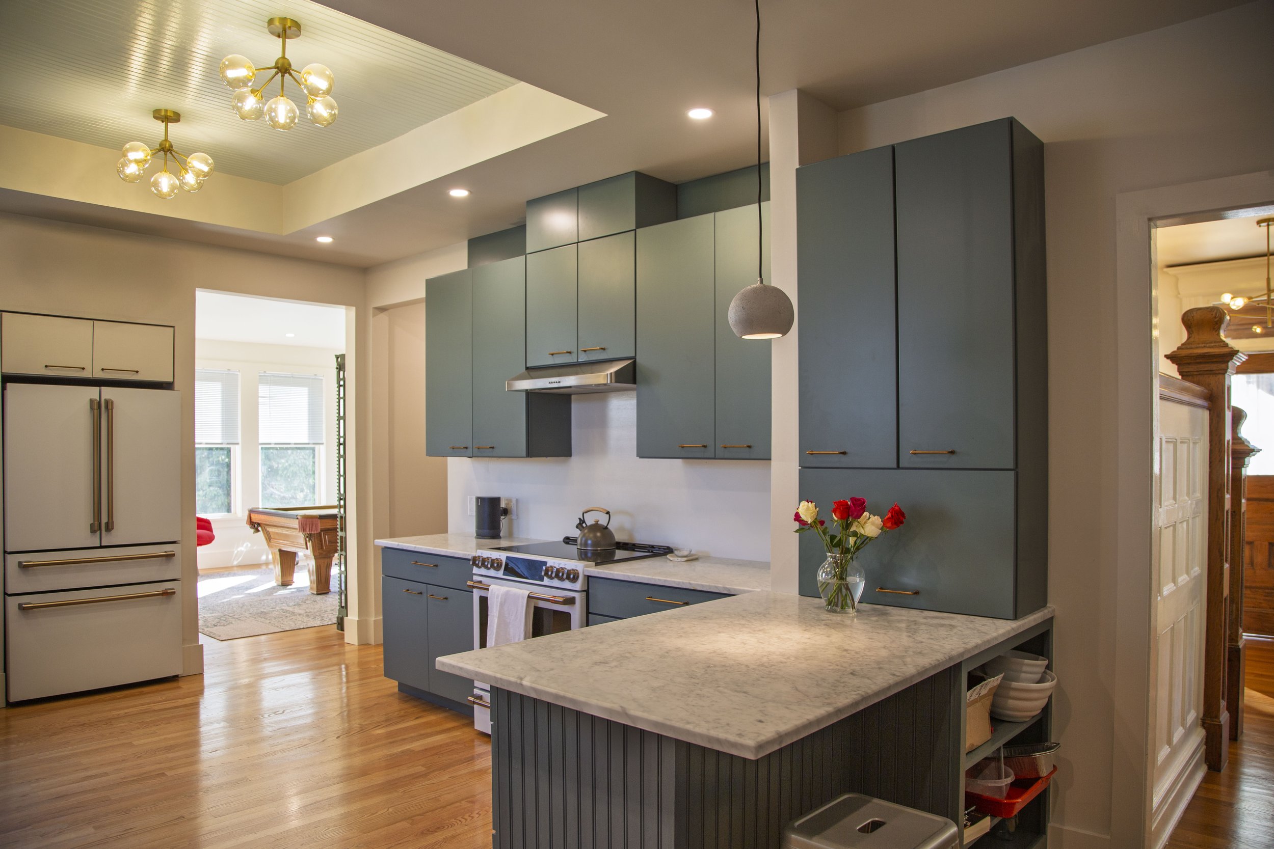 The owners, a couple with a young daughter, needed functional, well-connected living spaces on the ground floor. While respecting the original Victorian layout of the home, we created cased openings at various scales to better connect the kitchen, pantry, and recreation room.