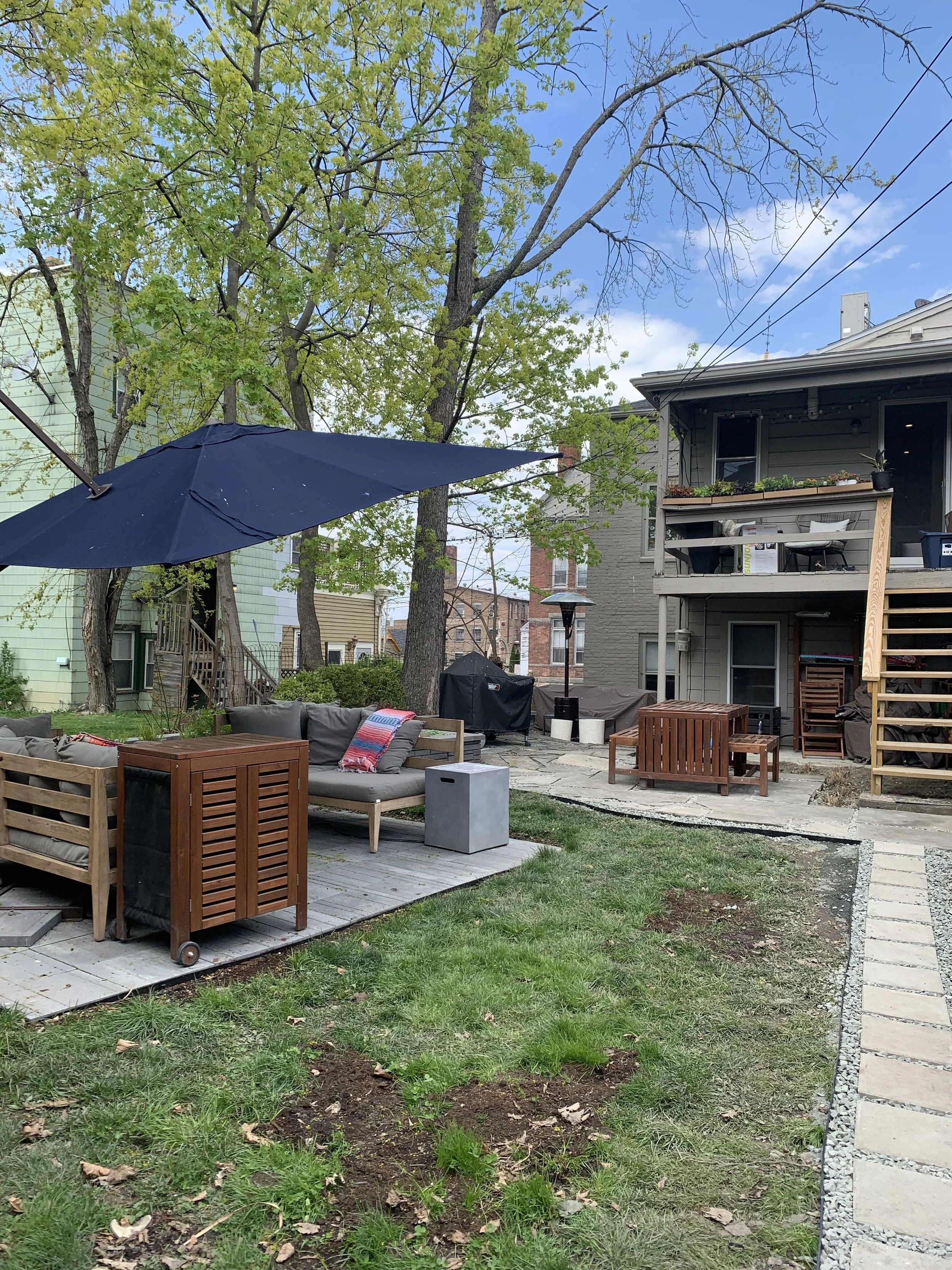 The small back yard had been largely neglected but left some incredible space and materials to work with. The L-shape of the house naturally leans itself to separate zones for the downstairs and upstairs tenants. Instead of a fence, I designed a lightning-bolt shaped raised planter bed to further define individual zones for different uses. Tall grasses provide lush filtered privacy where fences might feel confining.