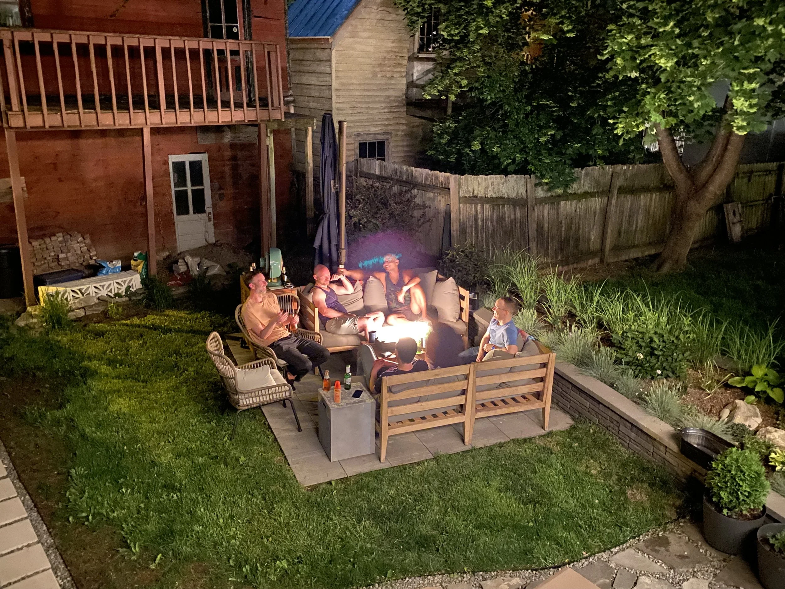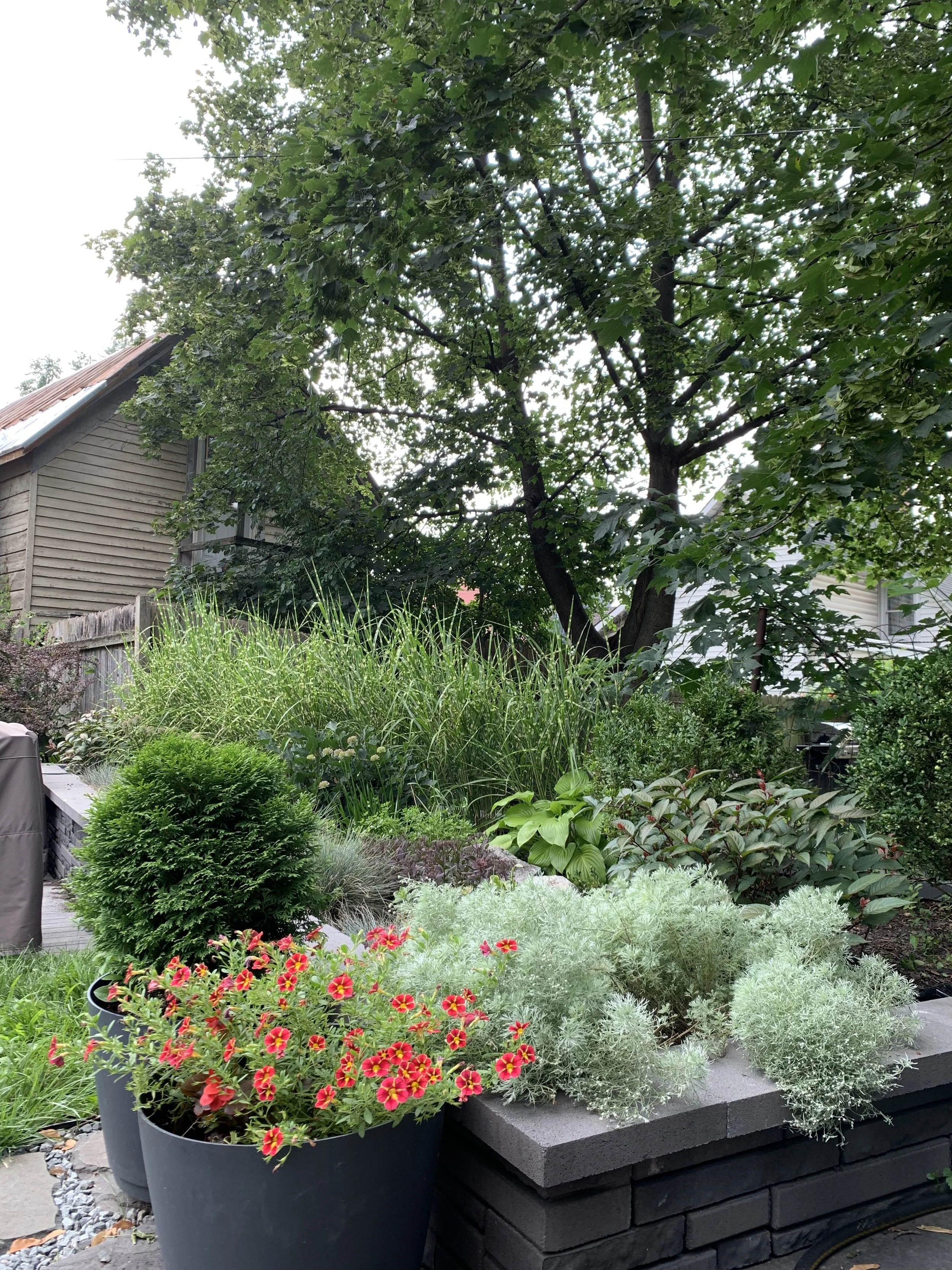 In warm months, the back yard is one of the main living and social spaces of the home, and the planters at the street greet guests with year-round plantings and decoration.